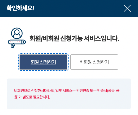 회원 신청? 비회원 신청?