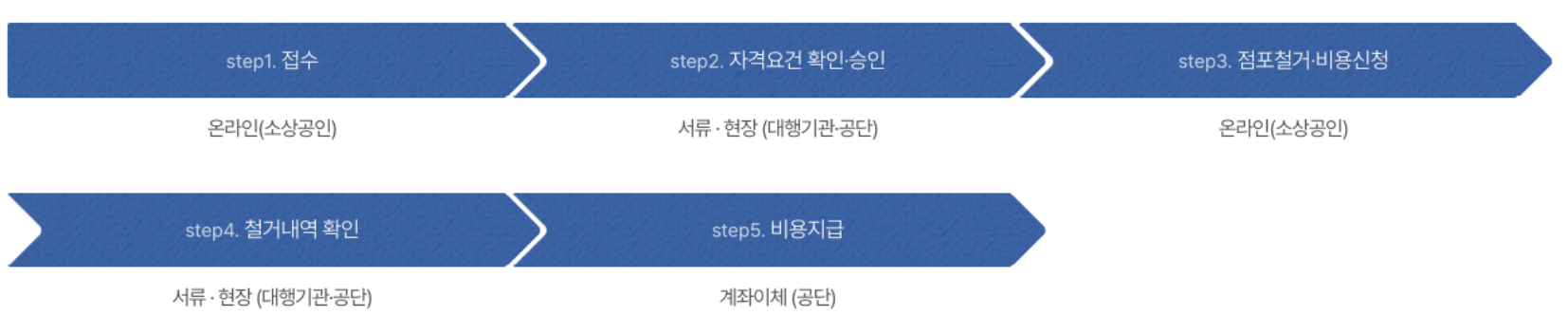 철거지원금 을 받으려면 먼저 사업자등록증 또는 폐업 증명서, 임대차 계약서 등을 준비해 접수하며, 아래에서 바로 신청할 수 있습니다.
