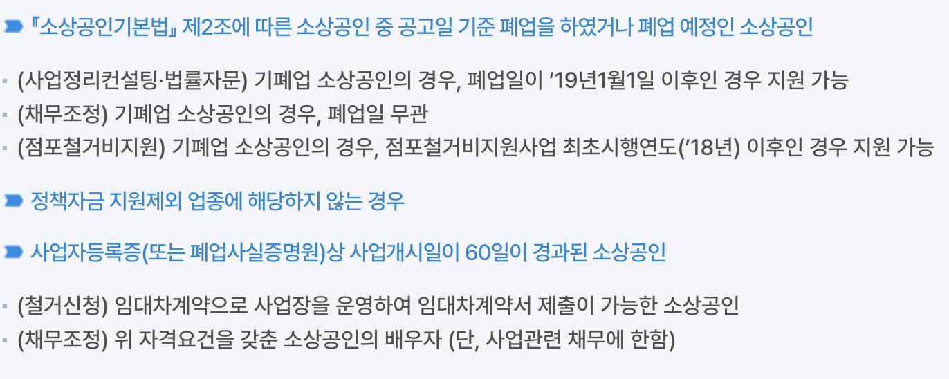 폐업을 하였거나 폐업 예정인 소상공인 모두 해당이 됩니다.