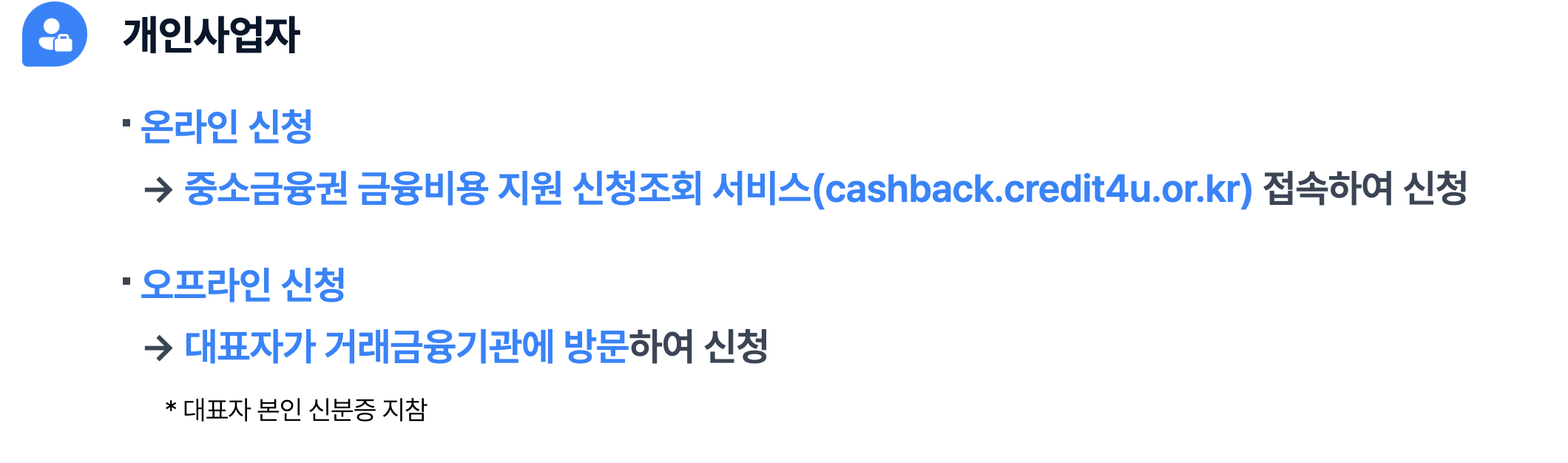 이자 환급을 받을 수 있는 대상은 중소금융권을 통해 돈을 빌린 개인사업자나 법인 소기업입니다.