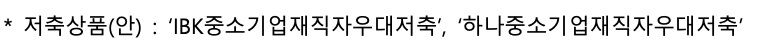 대표적인 저축상품으로는 IBK 은행 중소기업 재직자 우대 저축과 하나 은행 중소기업 재직자 우대 저축 중에 선택할 수 있습니다.