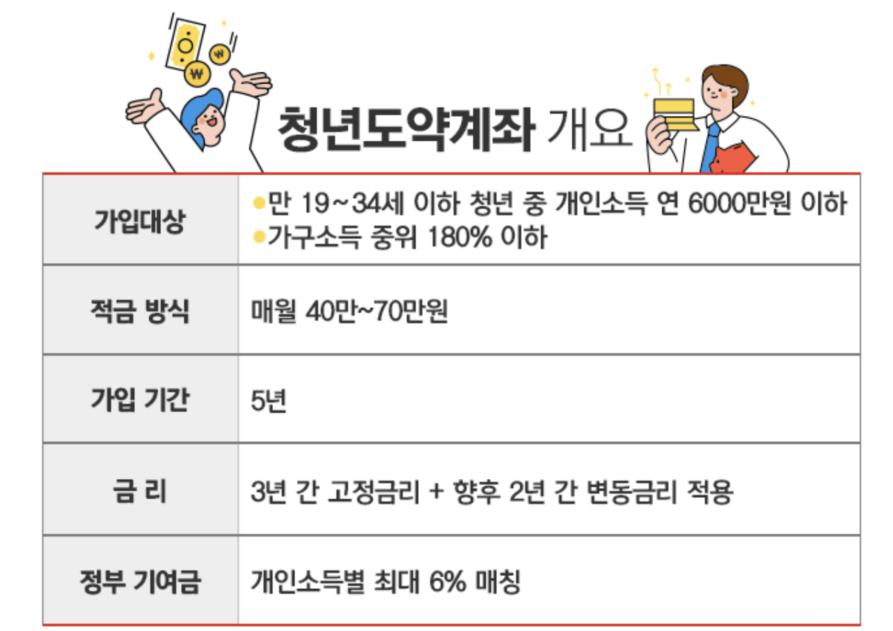 청년도약계좌는 국가에서 청년들의 자산 형성을 위해 저축한 돈 보다 많은 돈을 만기시에 돌려주는 예금상품입니다. 청년도약계좌 신청기간부터 가입조건까지 업데이트 된 사항을 중심으로 알아보겠습니다.