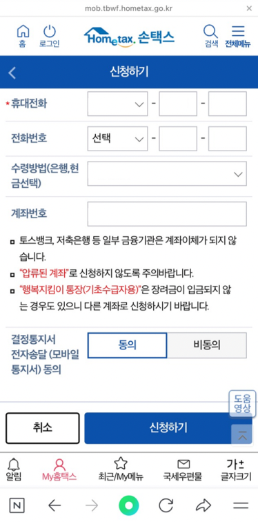 2. 모바일 앱(손택스): 모바일 앱 ‘손택스’에서 신청할 수 있습니다.